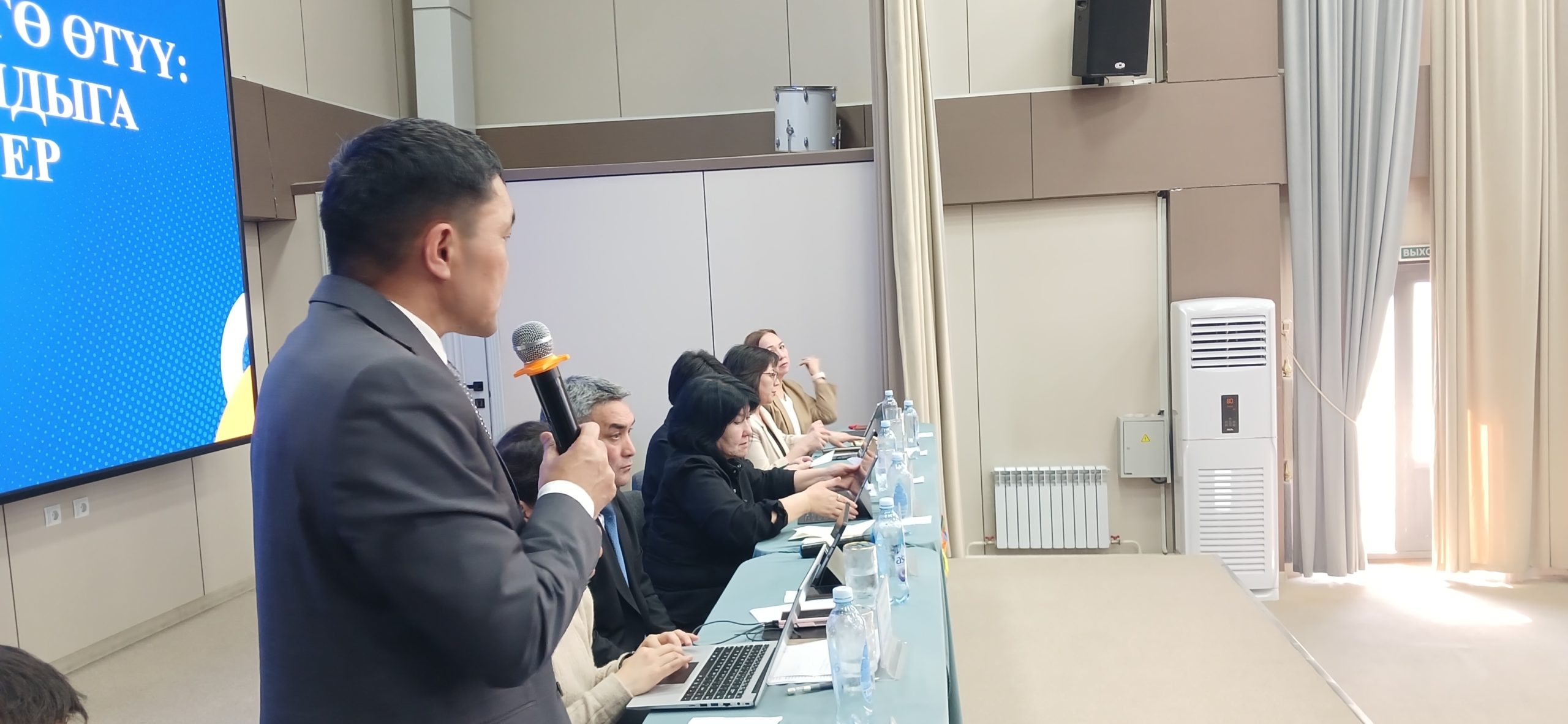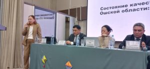 Билим берүүнүн сапатын өнүктүрүү департаментинин директору Бактыгүл Шамшидинова 12 жылдык билим берүүгө өтүү шартында билим берүү сапатын баалоо жана мониторинг жүргүзүү маселелерине токтолду. Ал эми «Окуу китеби» басма үйүнүн директорунун орун басары Аида Ишеналиева жаңы муундагы окуу китептерин даярдоо жана басып чыгаруу боюнча аткарылып жаткан иштер тууралуу маалымат берди.