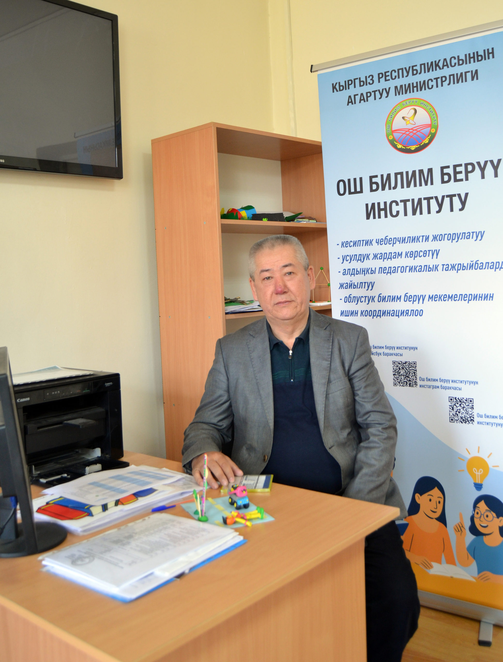 Жалпы иш стажы: 35 жыл, анын ичинен Ош БИде 20 жыл